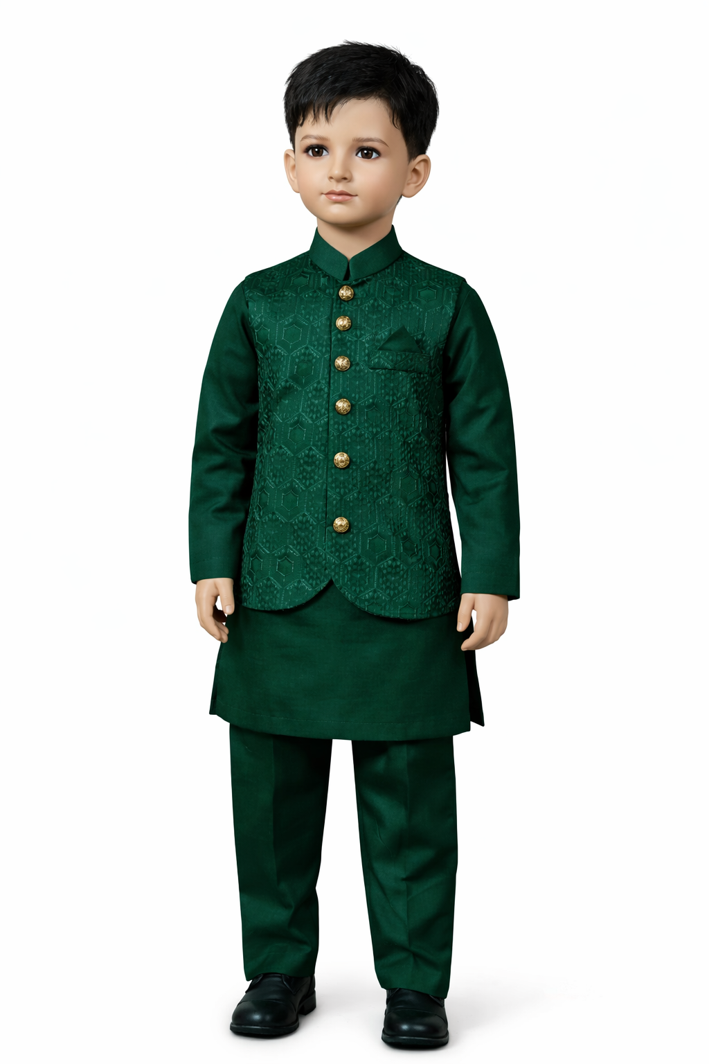 This elegant boys’ 3-piece prince suit is a perfect choice for weddings, Eid, parties, and special occasions.